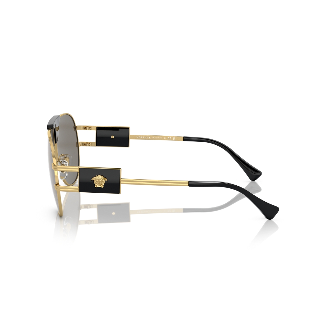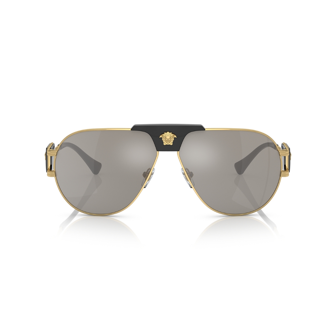 Lunettes de soleil Versace Aviateur VE2252 1002/6G – Monture or, verres gris miroir argent. Protection UV100%, catégorie 3, design iconique pour homme et femme. Livrées avec étui et chiffon d’origine.