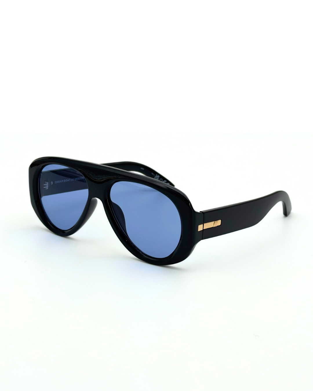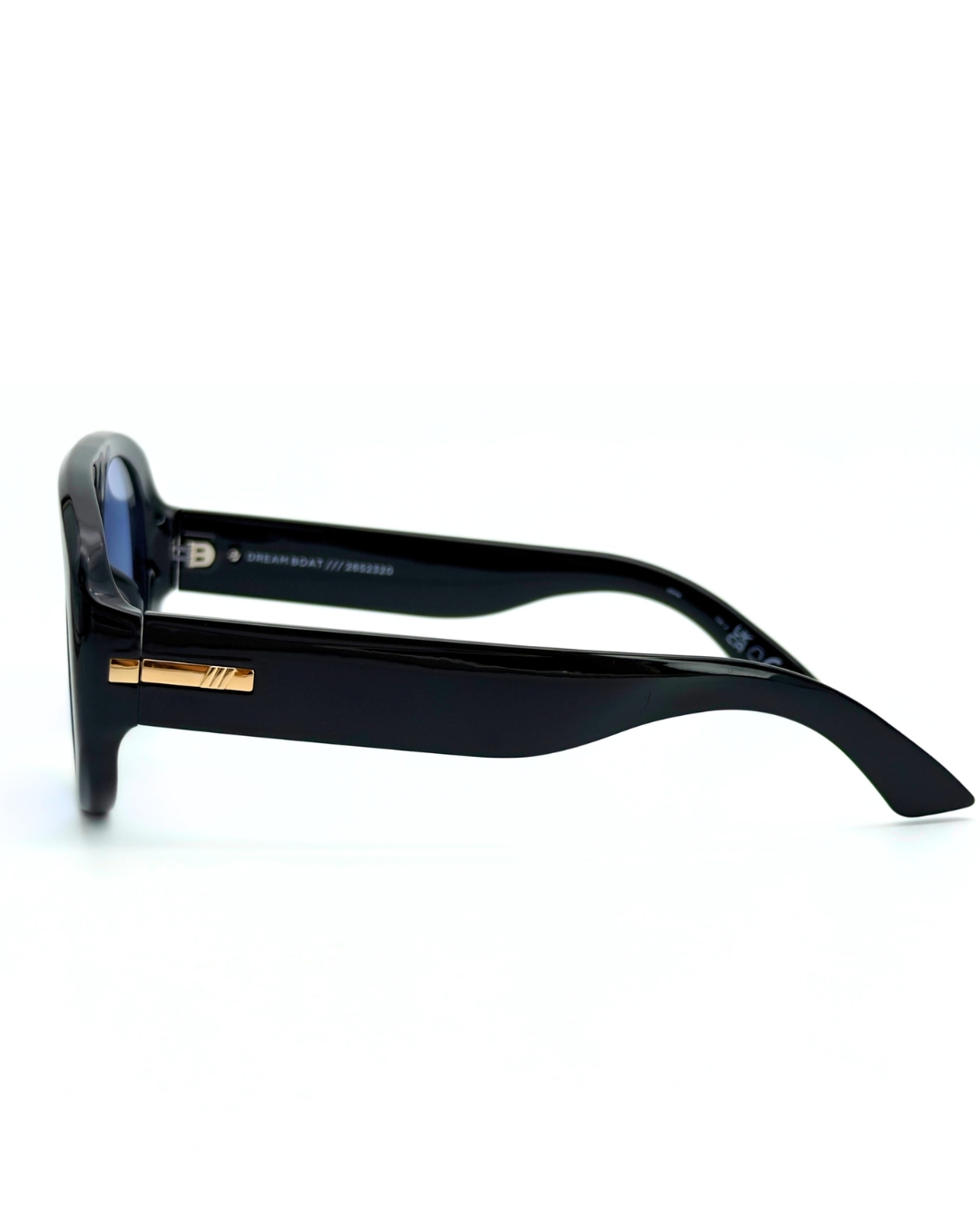 Affirmez votre style avec les solaires Le Specs Dream Boat en acétate noir. Une silhouette aviateur oversize « Flat Top » rehaussée de détails dorés premium. Disponibles au choix en version Verres Bleus Vintage ou Verres Polarisés Haute Performance. Confort absolu, protection UV maximale et design audacieux. (Taille 57-15-142).