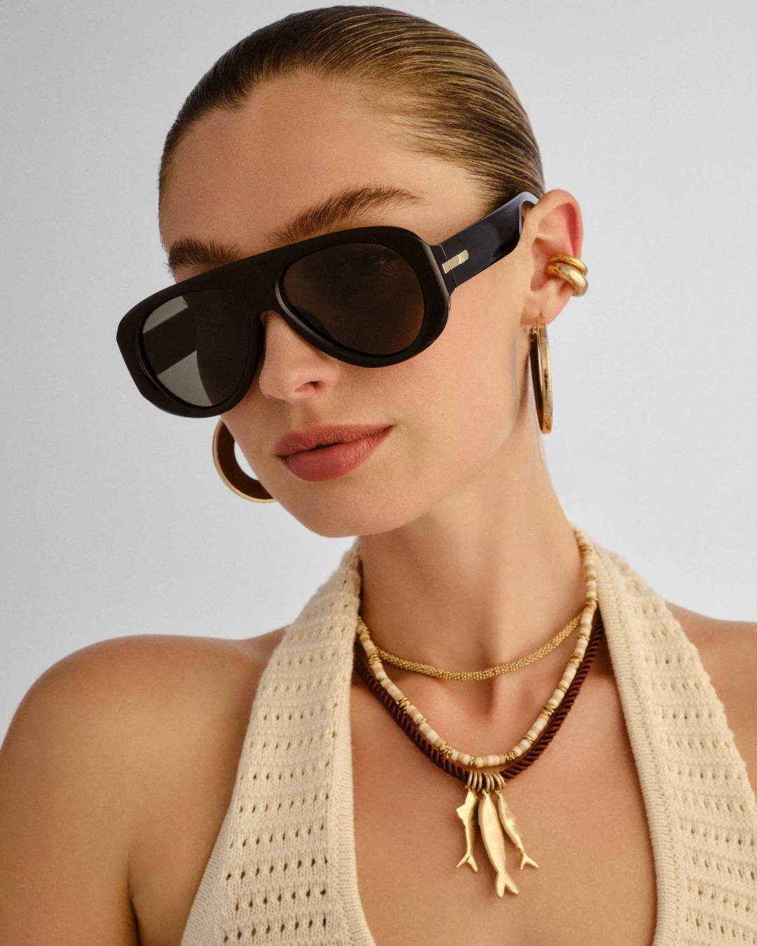 Tout d’abord, plongez dans l’élégance rétro-futuriste avec les lunettes de soleil Le Specs Dream Boat. En effet, ce modèle audacieux redéfinit la silhouette classique du pilote avec une monture « Flat Top » (barre frontale plate) en acétate noir épais. Que vous soyez en terrasse à La Marsa ou au volant, ces solaires oversize affirment un look premium. Par conséquent, cette paire s’impose comme l’accessoire incontournable de la saison pour sublimer votre regard.